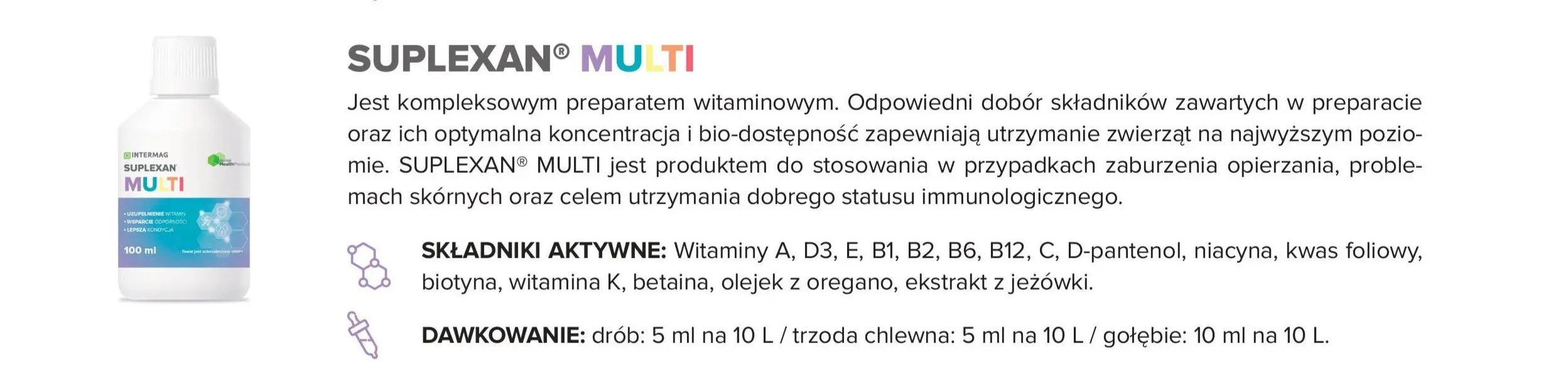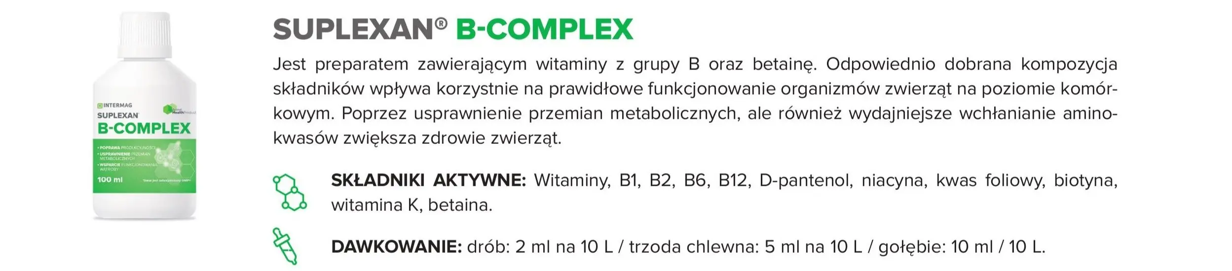 Preparaty Suplexan® to sprawdzone, nowoczesne dodatki witaminowe i funkcjonalne, których skuteczność została potwierdzona w hodowli drobiu i gołębi. Dzięki optymalnemu składowi, wysokiej biodostępności składników oraz wygodnemu dawkowaniu – Suplexan® to doskonałe wsparcie dla zdrowia, kondycji i odporności ptaków.